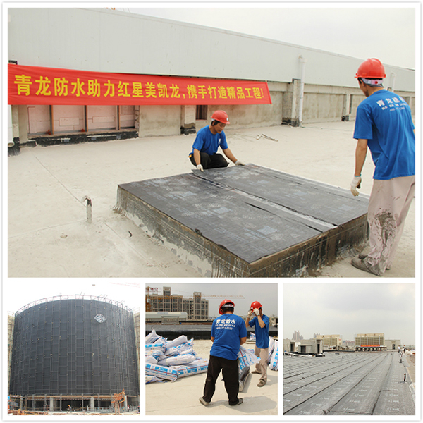 青龍公司項(xiàng)目經(jīng)理宋先生憑借優(yōu)秀的防水材料品質(zhì)和正確的投標(biāo)策略,從多家防水公司中脫穎而出,成功中標(biāo)這一知名防水項(xiàng)目,承接了紅星美凱龍?jiān)摷揖淤徫镏行牡牡叵率业装?、地下室頂板、?cè)墻防水施工、屋面防水施工及屋面油膏嵌縫等防水工程。根據(jù)設(shè)計(jì)要求和不同防水部位,在青龍防水專家徐工的指導(dǎo)下,制定了科學(xué)而嚴(yán)謹(jǐn)?shù)姆浪桨?,分別采用了911聚氨酯防水涂料(CQ107)、單組份濕固化聚氨酯防水涂料(CQ104)、JS 復(fù)合防水涂料(CQ105)和反應(yīng)粘防水卷材。青龍防水材料品質(zhì)過硬,防水性能顯著,在宋先生嚴(yán)格的施工下,得到了甲方和監(jiān)理的肯定。由于施工簡便,對(duì)工人操作技術(shù)要求不高,防水施工進(jìn)展非常順利,目前防水工程已處于收尾階段。