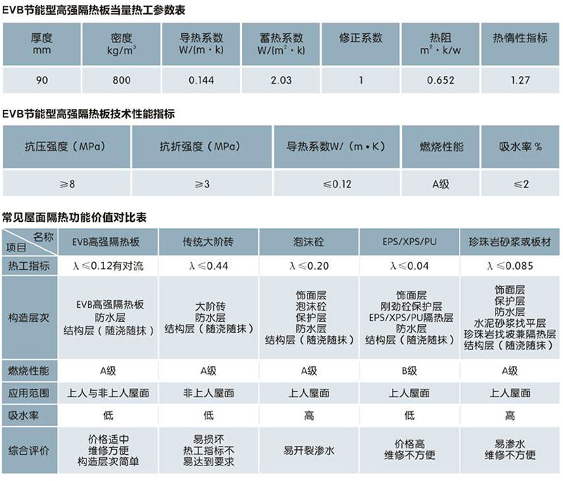 EVB節(jié)能型高強隔熱板是由廣西青龍化學(xué)建材有限公司為響應(yīng)國家節(jié)能減排政策用于解決屋面隔熱問題而專門研發(fā)的產(chǎn)品,其專利號為(Z200920052358.3)。它是由飾面層、隔熱層、承重層構(gòu)成。
