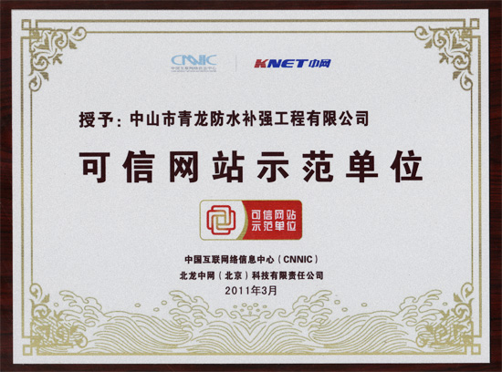 2010年10月29日,中國(guó)省級(jí)"可信網(wǎng)站示范工程"試點(diǎn)已在廣東啟動(dòng),首批"可信網(wǎng)站示范單位"也同期評(píng)出。國(guó)內(nèi)建筑防水、保溫、加固、GRC裝飾材料集大成者,國(guó)內(nèi)較大的EVB保溫砂漿生產(chǎn)商,高新技術(shù)企業(yè)——青龍化建(m.97007.cn)等多家網(wǎng)站,在眾多同行業(yè)網(wǎng)站中脫穎而出,率先通過(guò)認(rèn)證(證書(shū)近日下達(dá))。該示范工程由廣東省經(jīng)濟(jì)和信息化委員會(huì)、中央編辦事業(yè)發(fā)展中心、中國(guó)互聯(lián)網(wǎng)絡(luò)信息中心(CNNIC)等單位共同指導(dǎo)。廣大用戶可以在公司網(wǎng)站下方看到"可信網(wǎng)站示范單位"標(biāo)識(shí)。