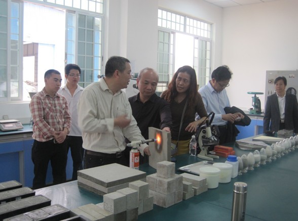EVB保溫砂漿、防水卷材等幾大生產(chǎn)線及產(chǎn)品檢測實驗室。在參觀過程中他們對各生產(chǎn)線現(xiàn)場管理,特別是對改造一新的卷材生產(chǎn)線進行了熱切地詢問,生產(chǎn)部相關(guān)人員均一一進行了講解。