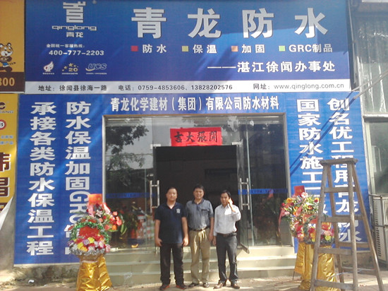 目前,青龍防水在全國已經(jīng)擁有多家專賣店,此專賣店的開業(yè)是青龍公司總部與湛江代理商加強深層次戰(zhàn)略合作的結果。湛江代理商白總介紹,青龍品牌市場口碑好,檔次高,資質齊全,配套服務好,品種多,主營產(chǎn)品涵蓋了建筑施工的各種防水需要。白總講加盟青龍才一年就嘗到了甜頭,承接了湛江中海油數(shù)百萬的維修補漏工程。此次布局徐聞市場,白總充滿信心。