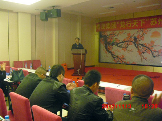 在技術(shù)交流會(huì)上,青龍?zhí)K州分公司的負(fù)責(zé)人康總致歡迎辭,并預(yù)祝技術(shù)交流會(huì)取得圓滿成功。青龍建材省外營(yíng)銷總監(jiān)王定中先生主講了青龍公司“