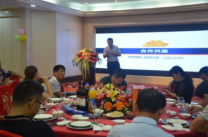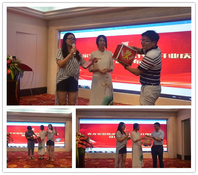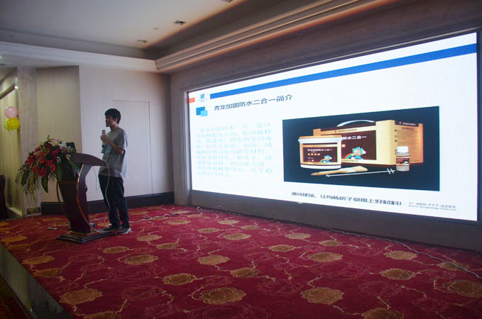在答謝午宴上,賓客滿席,董老板、青龍營銷總監(jiān)賀總、青龍家裝營銷于總、青龍質(zhì)量總監(jiān)張總和專賣店技術(shù)工程師周工分別上臺進(jìn)行了分享。午宴中還穿插了精彩的文藝節(jié)目和豐富的活動,將現(xiàn)場氛圍推向高潮。廣大來賓在一片歡聲笑語中,不僅學(xué)習(xí)了更多的創(chuàng)業(yè)經(jīng)驗和防水知識,也拓展了人際網(wǎng)絡(luò),愉快地度過了這個美好的正午。