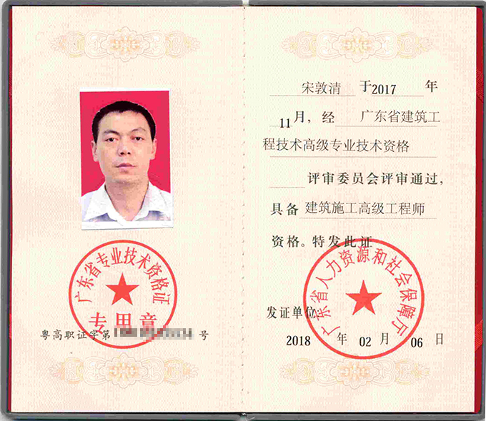近日,經(jīng)廣東省建筑工程技術(shù)好的專業(yè)技術(shù)資格評(píng)審委員會(huì)評(píng)審,青龍公司董事長(zhǎng)宋敦清先生成功通過評(píng)審,獲得建筑施工好的工程師資格。宋董這一資格的獲得,是青龍公司多年科研技術(shù)積累的體現(xiàn)和技術(shù)團(tuán)隊(duì)積極提升的結(jié)果,同時(shí)也為切實(shí)保障代理商和客戶防水工程優(yōu)質(zhì)質(zhì)量提供了保證。