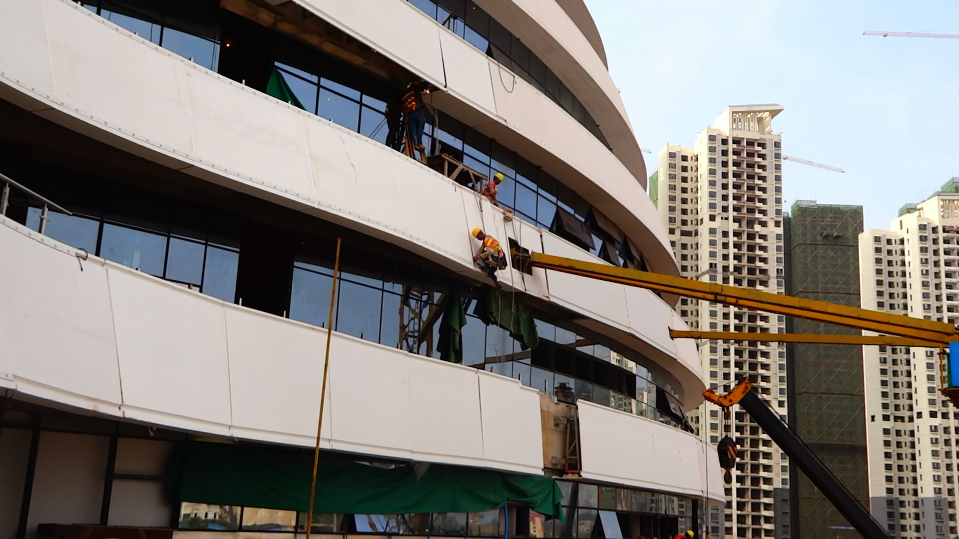 青龍公司作為國(guó)內(nèi)GRC領(lǐng)域的知名企業(yè),承接了新媒體中心三座主體結(jié)構(gòu)的雙曲面外墻板項(xiàng)目。由于所有的面板沒(méi)有一片完全相同,不僅要經(jīng)受高空風(fēng)雨的侵蝕,相鄰兩塊更要緊密榫合,天衣無(wú)縫,并在整體上形成流線性美感,因此需要制作大量的模具,工程極為繁瑣。但青龍GRC團(tuán)隊(duì)克服重重困難,從圖紙深化設(shè)計(jì)、彩色GRC選材、造型產(chǎn)品生產(chǎn)到安裝施工等一系列工序中都做到極致,讓甲方和監(jiān)理都非常滿(mǎn)意。