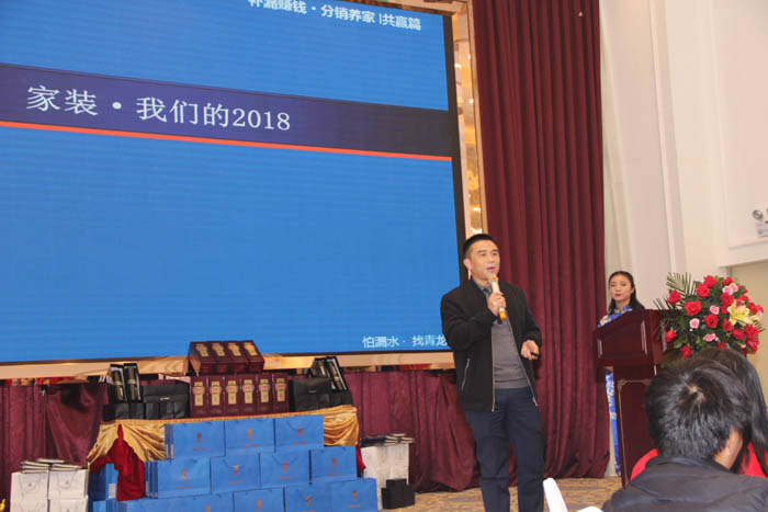 青龍家裝防水事業(yè)營銷總監(jiān)于超軍作《家裝,我的2018》總結(jié)報告,簡要分析了2018年青龍家裝防水市場開發(fā)情況及存在的問題,對2019年的重要工作作了部署,召開大家同心同德,再創(chuàng)輝煌!