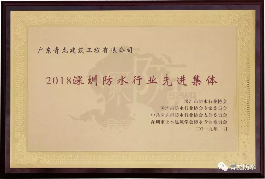 04、2019年1月 | 榮獲"2018年深圳防水行業(yè)先進(jìn)集體獎(jiǎng)"