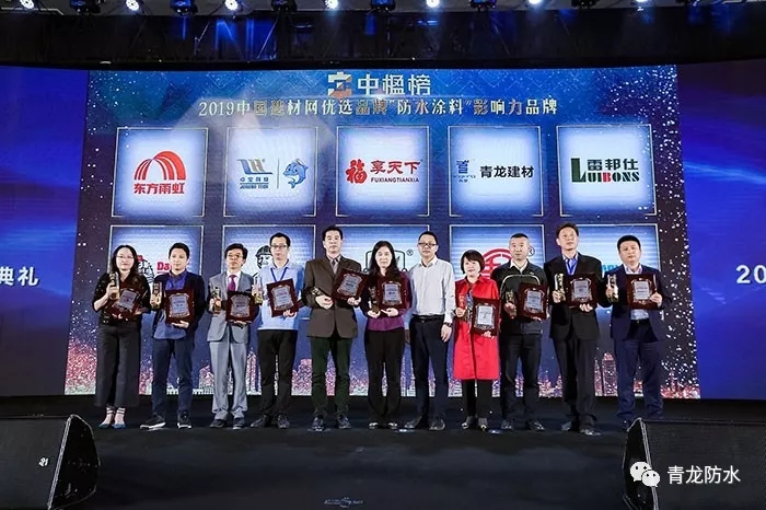 2019年5月9日,以"聚焦精裝,共筑未來"為主題的2019房地產(chǎn)供應(yīng)鏈發(fā)展峰會(huì)暨"中楹磅"中國(guó)建材網(wǎng)優(yōu)選品牌頒獎(jiǎng)典禮在廣州香格里拉酒店隆重舉行,青龍建材應(yīng)邀出席,同時(shí)憑借品牌實(shí)力和市場(chǎng)影響力成功榮獲防水材料影響力品牌獎(jiǎng),這是對(duì)青龍公司長(zhǎng)期以來的品牌經(jīng)營(yíng)和市場(chǎng)拓展的肯定與褒獎(jiǎng)。