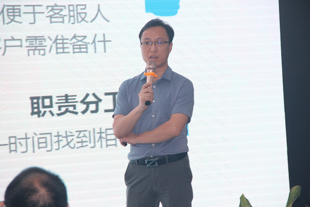 工裝渠道客戶服務(wù)中心林經(jīng)理分享了"改善服務(wù)不平,全國服務(wù)客戶",林經(jīng)理從訂單、庫存、下單、物流、票據(jù)、團(tuán)隊(duì)職責(zé)等六個(gè)方面詳細(xì)分析了工裝客服服務(wù)的內(nèi)容,并承諾后期團(tuán)隊(duì)成員將在快速響應(yīng)、服務(wù)態(tài)度、責(zé)任和客戶體驗(yàn)等方面進(jìn)行改進(jìn),并就青龍工裝產(chǎn)品銷量排行進(jìn)行了簡單的分析,最后由客戶服務(wù)中心張主管就稅費(fèi)進(jìn)行了講解。