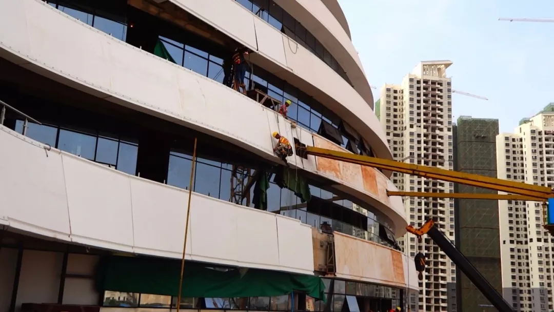 青龍公司作為國內(nèi)GRC領(lǐng)域的知名企業(yè),承接了新媒體中心三座主體結(jié)構(gòu)的雙曲面外墻板項目。由于所有的面板沒有一片完全相同,不僅要經(jīng)受高空風(fēng)雨的侵蝕,相鄰兩塊更要緊密榫合,天衣無縫,并在整體上形成流線性美感,因此需要制作大量的模具,工程極為繁瑣。但青龍GRC團隊克服重重困難,從圖紙深化設(shè)計、彩色GRC選材、造型產(chǎn)品生產(chǎn)到安裝施工等一系列工序中都做到極致,讓甲方和監(jiān)理都非常滿意。