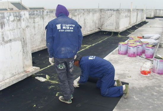 該項目需要維修的屋面防水維修改造工程,總共49棟。其中南苑包括單身公寓30棟,三區(qū)包括探親樓及幼兒園19棟。項目不僅要求防水,還要保溫。由于改造工程規(guī)模較大,施工難度高,且工期短,經(jīng)青龍公司技術(shù)工程師多次實(shí)地綜合勘察,最后選用了青龍RJS208反應(yīng)性聚合物水泥涂料和高分子防水卷材復(fù)合防水工法,在處理好基層施工面上涂刷RJS208(CQ113)成膜,并以此為粘合劑,直接粘貼高分子卷材,并以防水隔熱磚代替原有的方階磚。經(jīng)過青龍公司精心施工,最后如期完成。