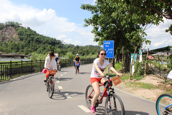 由于當(dāng)天的氣溫比平時高許多,且太陽當(dāng)照,給騎行的隊伍增加了不少困難。途中欣賞如詩如畫的田園風(fēng)光,青龍人盡情地呼吸著清新爽朗空氣讓人有酣暢淋漓的感覺。旅途中,愛美的同事還不忘自拍,讓整個活動其樂無窮。金鐘水庫怡人的風(fēng)景深深吸引著我們,也讓我們流連忘返。