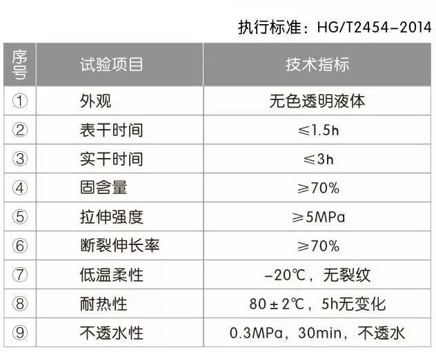 3、涂膜具有較好的強度和延伸性,堅韌能抵抗基層變形開裂所產(chǎn)生的應力;