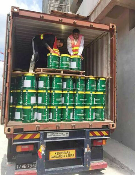 近日,青龍建材公司出口馬來西來的一個貨柜的防水材料終于順利到達新山市金海灣工地,卸貨時一桶桶青龍防水涂料,特別引人注目,這標志著青龍建材集團在拓展海外市場的進程中取得了重大進展,防水材料性能得到國外防水工程認可,彰顯了青龍集團的國際品牌影響力。