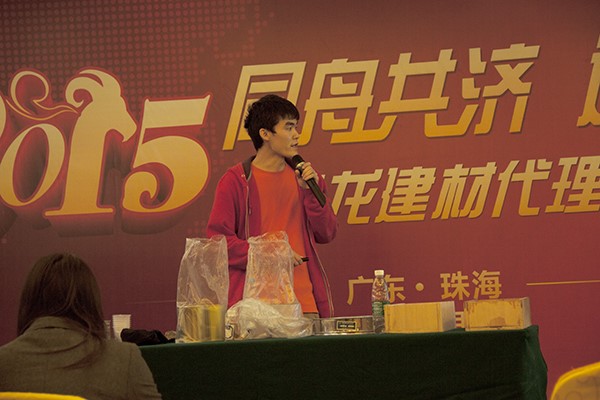 年會會議上,青龍防水材料質(zhì)量總監(jiān)張科首先介紹了青龍最新推出的兩款產(chǎn)品:青龍三號防水透明膠和高滲透環(huán)氧灌漿材料,詳細(xì)分析了其特點,優(yōu)勢和應(yīng)用前景,指出,這兩款新防水材料相比傳統(tǒng)防水材料具有明顯的防水效果,將會為代理商帶來新的競爭優(yōu)勢,并以實例演示展現(xiàn)青龍三號防水透明膠的防水性能。