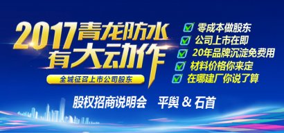 2017年青龍防水有大動作,股權(quán)招商會即將開啟