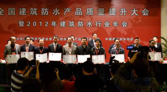 2012年12月7日,全國建筑防水產(chǎn)品質(zhì)量提升大會在桂林召開。此次會議由國家質(zhì)量監(jiān)督檢驗檢疫總局、中國建筑防水協(xié)會主辦,來自25個?。ㄗ灾螀^(qū)、直轄市)質(zhì)監(jiān)部門和生產(chǎn)許可管理部門的負責人,以及全國建筑防水行業(yè)骨干企業(yè)的負責人,共計450多人出席會議。