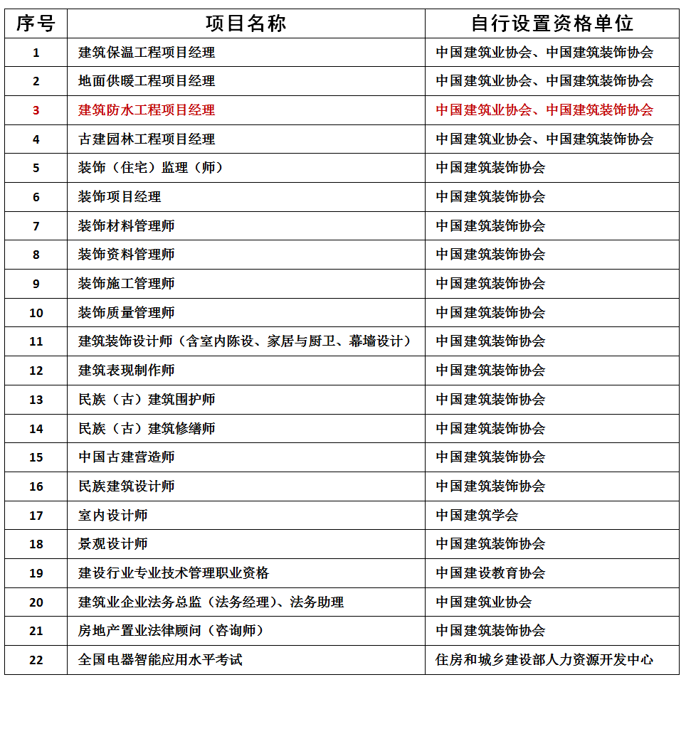 建筑防水工程項目經(jīng)理等22項職業(yè)資格的評價、認定、發(fā)證等工作被叫停,這是住房城鄉(xiāng)建設部辦公廳近日下發(fā)的通知明確的。
